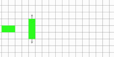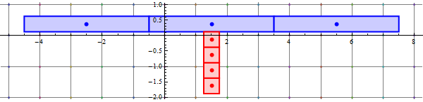 Pure pass through: if the middle particle is stretched vertically by a significantly larger amount than the non-interpenetration case shown above, then the middle particle will continue to interact with its neighbors above and below, but it will not have overlapping support in the horizontal direction with relatively skinny particles (like the tip of the dart).