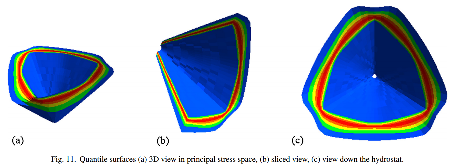 ABSTRACT: In statistical damage mechanics, a deterministic failure limit surface is replaced with a scale-dependent family of quantile surfaces. An idealized homogeneous isotropic matrix material containing cracks of random size and orientation is used to elucidate expected mathematical character
